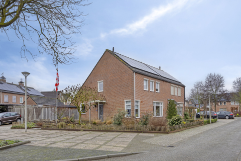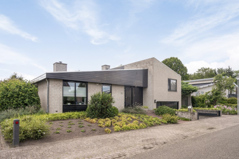 Entree met het toilet, meterkast en de garderobe. Sfeervolle L-vormige living met fraaie eiken houtenvloer en provisiekast. Vanuit de woonkamer heeft u een fraai zicht op de tuin en mooie lichtinval. Moderne inbouwkeuken (2020) voorzien van diverse apparatuur zoals: gaskookplaat, afzuigkap, vaatwasser (2022), koel/vriescombinatie en oven. Stucwerkplafond met inbouwverlichting en openslaande tuindeuren naar het terras. Bijkeuken met de opstelling van een keukenblok en de witgoedaansluitingen.
